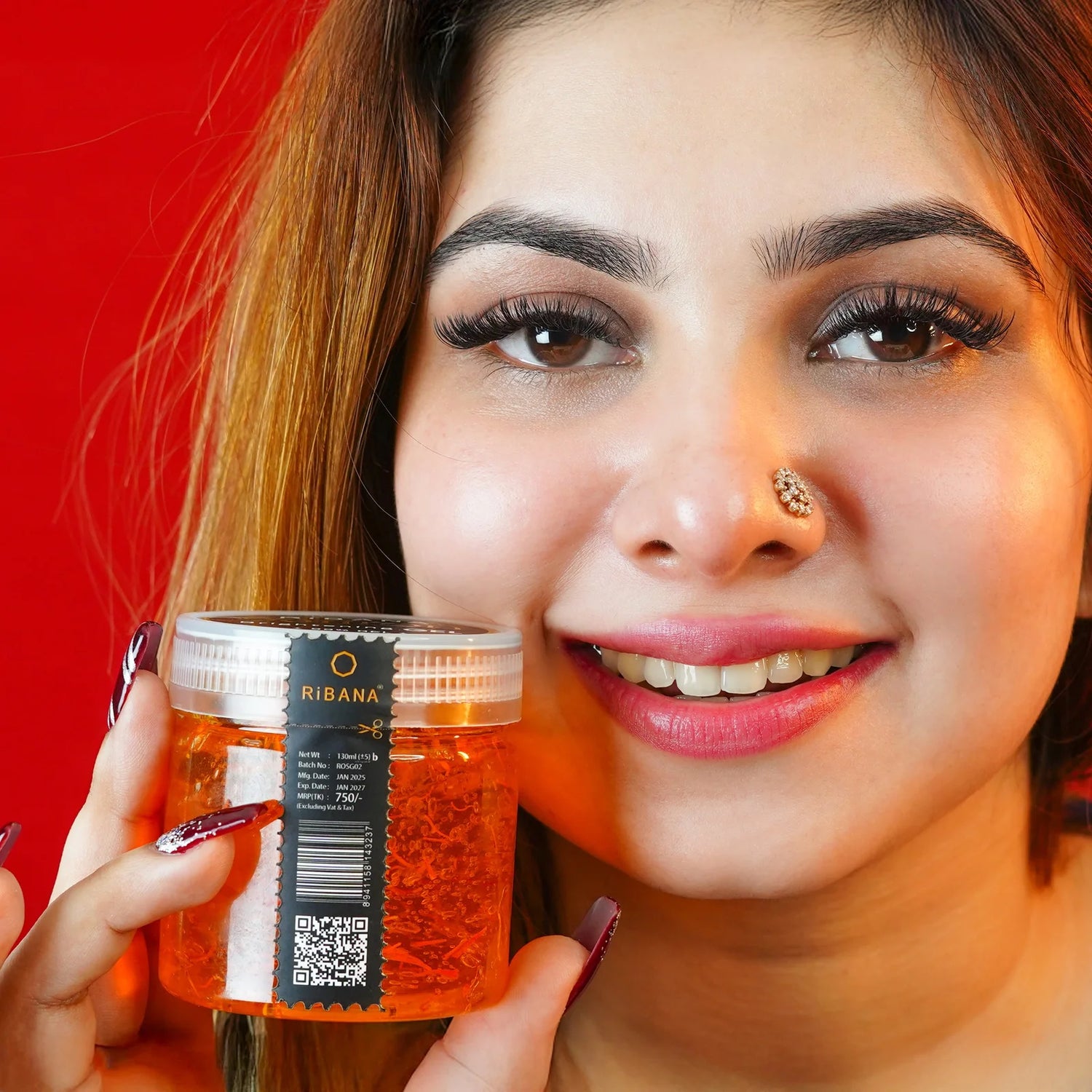 RiBANA Saffron Gel is a premium 130ml natural brightening gel formulated with pure saffron extract and aloe vera. This 100% organic saffron gel helps achieve radiant, glowing skin while effectively reducing acne spots, suntan, and pigmentation.